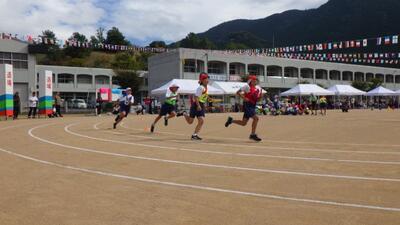 秋季大運動会 投稿: 管理者 (10/19) カテゴリー: 学校行事 先日、秋季大運動会が行われました。保護者の皆さまや地域の方々からの温かい応援をエネルギーに変え、子どもたちは練習の成果を存分に発揮することができました。勝敗に関係なく、最後まで全力を出し切った子どもたちの表情はとても輝いていました。また、早朝からの準備・片付けなど、ご協力いただいた皆さま、本当にありがとうございました。