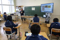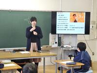 聴覚障がいについて教えていただいた後、実際に補聴器を使用してみたり、ジェスチャーだけで伝える伝言ゲームをしたり、手話を教えていただいたりしました。子どもたちは、山本さんの口の動きを見ながら、何を話されているのかを一生懸命に聞いていました。最後は、手のひらをひらひらさせる手話でお別れしました。